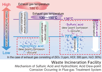 또한 최근 다이옥신 대책의 눈부신 기술 발전으로 인해 배가스 온도는 이전 수준보다 점점 더 낮아지고 있습니다.